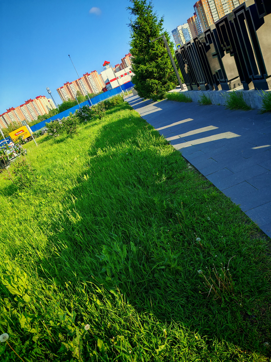 06.35 Выходим гулять с собакой. Сегодня на улице солнечно, +12°, но, в лучших традициях этого лета, ветер холодный, в курточке совсем не жарко.