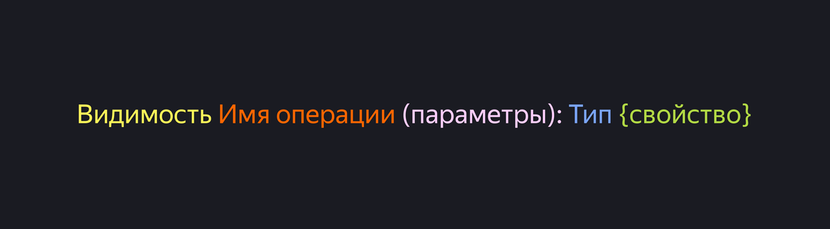 [видимость] имя([параметр: тип, ...]): возвращаемый_тип {свойства}