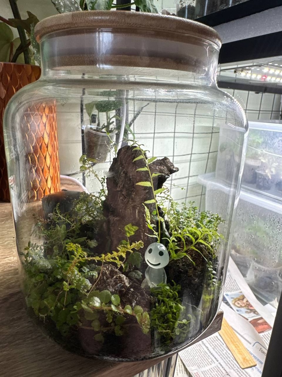 Добрейшего зелёного утречка💚 Покажу вам красоту с кодамами (духи леса в анимэ Хаяо Миядзаки). ⏺️с 1 по 4 фото - оформляла флорариум Аня, ⏺️с 5 по 8 фото - так оформила террариум Настя, ⏺️а последняя фотография с оккупантами на монстере - от @Criogenum. У всех получилось очень атмосферно. А знаете, что самое интересное?😉 Выбрать по итогу #игра_каналу1год можно было вообще любые фигурки, но девочки, не сговариваясь, отдельно друг от друга выбрали именно этот набор.❤️ Больше того: на WB таких наборов было всего 4... Я посчитала, что это знак - и четвертый набор с кодамами приехал ко мне☺️где-то на моих фото они уже попадались)) А вы оформляете флорариумы-террариумы интересными фигурками и персонажами?)