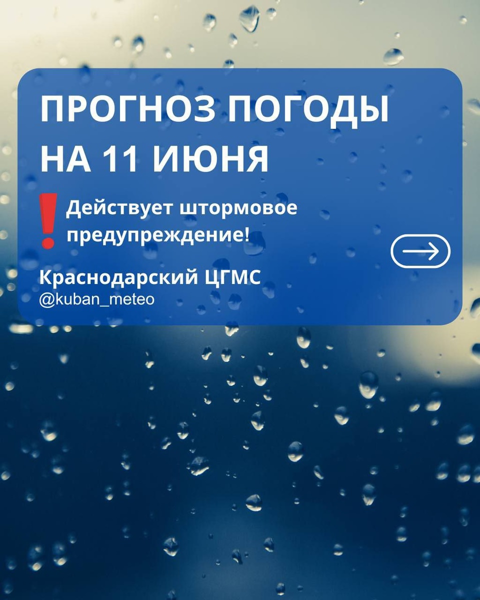 ⛈️Прогноз погоды в Краснодарском крае на 11 июня