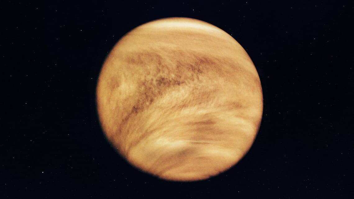 #деньзаднем 1️⃣9️⃣8️⃣5️⃣год – автоматическая межпланетная станция «Вега-1» достигла окрестностей Венеры 📝Интересный факт: это вторая по удаленности от Солнца и шестая по размеру планета Солнечной системы, названа в честь древнеримской богини любви. В результате проведенного аппаратами комплекса научных исследований была подробно исследована атмосфера большого небесного тела. Венера является самой плотной среди планет земной группы, поскольку содержит до 96% углекислого газа, до 4% азота и немного водяного пара. На ее поверхности был обнаружен тонкий слой пыли. На фото: ультрафиолетовое изображение атмосферы Венеры, полученное аппаратом «Пионер-Венера-1» (1979)