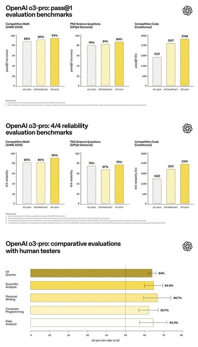 OpenAI выпустила новую модель — o3 Pro 🚀 Она уже доступна подписчикам Pro и через API. При этом стоимость модели значительно снизилась: теперь $20/$80 за миллион токенов вместо прежних $150/$600 у o1 Pro. Вместе с этим OpenAI сразу в 5 раз снизила цену на обычную o3 — всего $2/$8 за миллион токенов. По производительности o3 Pro сопоставима с Gemini 2.5 Pro и превосходит Claude 4 Sonnet Thinking. Стиль ответов не такой развернутый, как у Claude 4 Opus, но при этом более лаконичный и четкий, чем у Gemini 2.5 Pro и DeepSeek R1. 🔥 Кстати, кто-нибудь тут пользуется самой дорогой подпиской на ChatGPT? Делитесь впечатлениями! :) #chatGPT #openAi 💬Telegram | 📹YouTube | 💳Boosty
