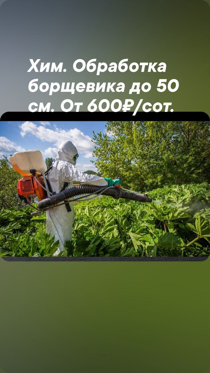 ❗️Вниманию дачников❗️ В Московской области утвердили фиксированный штраф за наличие на участке борщевика. Соответствующие  поправки внесены в подмосковный КоАП Борщевик  — опасный сорняк, который захватывает большие территории, в вытесняя полезные растения, и представляет угрозу для здоровья животных и человека. Обработку участка и истребление сорняка стоит доверить нам, мы занимаемся уничтожение более 4 -х лет. Вся подробная информация тут 👇🏻 https://wa.me/message/RCJQFGEWFLO4M1 Тел. ☎️ 8(499)3481-500 WhatsApp и Telegram - канал  +7 (929) 597 98 92