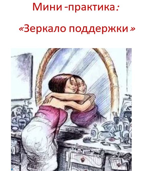 π ΠΠΈΠ½ΠΈ-ΠΏΡΠ°ΠΊΡΠΈΠΊΠ°: Β«ΠΠ΅ΡΠΊΠ°Π»ΠΎ ΠΏΠΎΠ΄Π΄Π΅ΡΠΆΠΊΠΈΒ» π ΠΠΎΠ΄ΠΎΠΉΠ΄ΠΈ ΠΊ Π·Π΅ΡΠΊΠ°Π»Ρ (ΠΌΠΎΠΆΠ½ΠΎ ΠΏΡΠ΅Π΄ΡΡΠ°Π²ΠΈΡΡ). π Π‘ΠΊΠ°ΠΆΠΈ ΡΠ΅Π±Π΅ ΡΡΠ°Π·Ρ: Β«Π― Π²ΠΈΠΆΡ, ΠΊΠ°ΠΊ ΡΡ ΠΈΠ·ΠΌΠ΅Π½ΠΈΠ»Π°ΡΡ. ΠΡΠΎ Π²Π°ΠΆΠ½ΠΎ. ΠΡΠΎ ΡΠΌΠ΅Π»ΠΎ. ΠΡΠΎ ΡΠ²ΠΎΠΉ ΠΏΡΡΡΒ». π ΠΠ±ΡΠ°ΡΠΈ Π²Π½ΠΈΠΌΠ°Π½ΠΈΠ΅ β ΠΊΠ°ΠΊΠΈΠ΅ ΡΠΌΠΎΡΠΈΠΈ Π² ΡΠ΅Π»Π΅, ΡΡΠΎ ΠΎΡΠ·ΡΠ²Π°Π΅ΡΡΡ? πΠΠ°ΠΏΠΈΡΠΈ: ΡΡΠΎ Ρ