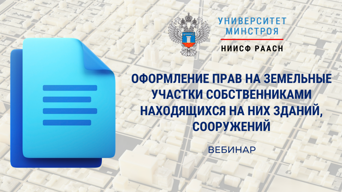 🗓 17 июня 2025 года в 10:00 (Мск) Университет Минстроя проводит бесплатный вебинар «Оформление прав на земельные участки собственниками находящихся на них зданий, сооружений»