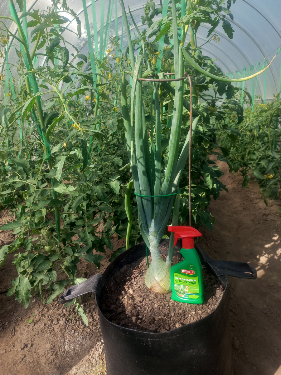 Не так-то просто вырастить гигантский лук для конкурса. Думала, что все сложности позади, но нет. В этот раз луковицы пришлось защищать от муравьёв, которые решили, что гроубэги (огромные сумки для выращивания растений) отличное место для их проживания. Ещё бы - много рыхлой земли в тёплом и сухом месте. Муравьям хорошо, луку не очень. На помощь вновь пришли средства от Bone Forte. Натуральный спрей от ползающих и летающих насекомых с безопасной для растений формулой прекрасно справился с задачей. Обработка была вечером, а утром в гроубэгах уже не было ни одного муравья. Это было не первое применение этого препарата. Несколько дней назад он отбил у ос желание заселиться на тёплом солнечном местечке рядом с цветником. Одна единственная бработка поверхности земли в этом месте - и осы улетели! И если у вас есть подобные проблемы, то смело используйте средства от насекомых, разработанные Боне Форте. Применять их легко и удобно, не надо тратить время на разведение препарата в воде и запра