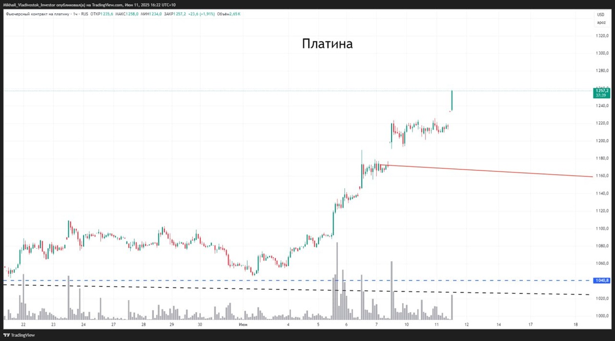 За Платиной наблюдаете? 😉 Хороший и стремительный рост показывает. Палладий может тоже начать свое восхождение. Тем более пробили все сопротивления ближайшие. Пристально наблюдаю и ищу покупки ✍️