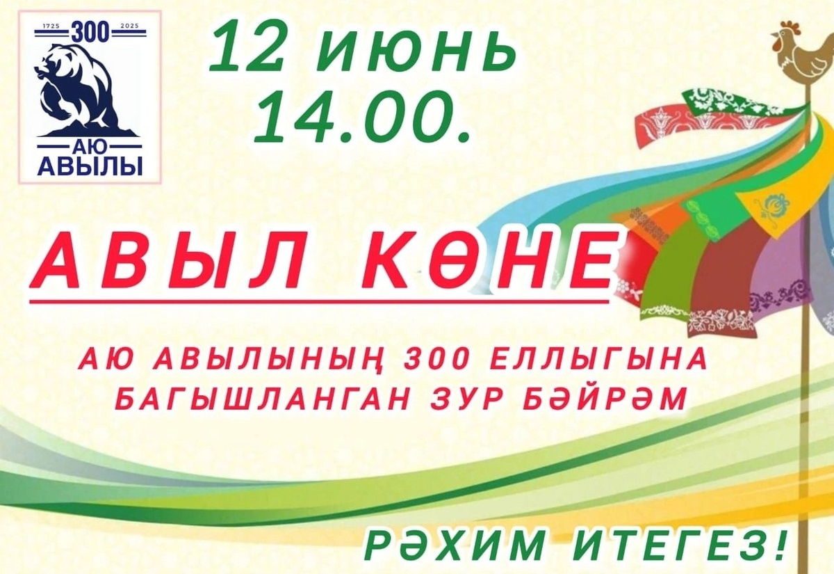 Жителей и гостей Мензелинского района приглашают на Дни села, которые пройдут в следующих населенных пунктах: 12 июня: Село Бикбулово – начало в 10:00 Село Аю – начало в 14:00 13 июня: Село Тулубаево – начало в 11:00 Новомелькенское сельское поселение (населенный пункт Сарсаз-Тралы) – начало в 13:00 5 июля: Село Подгорный Байлар – начало в 11:00