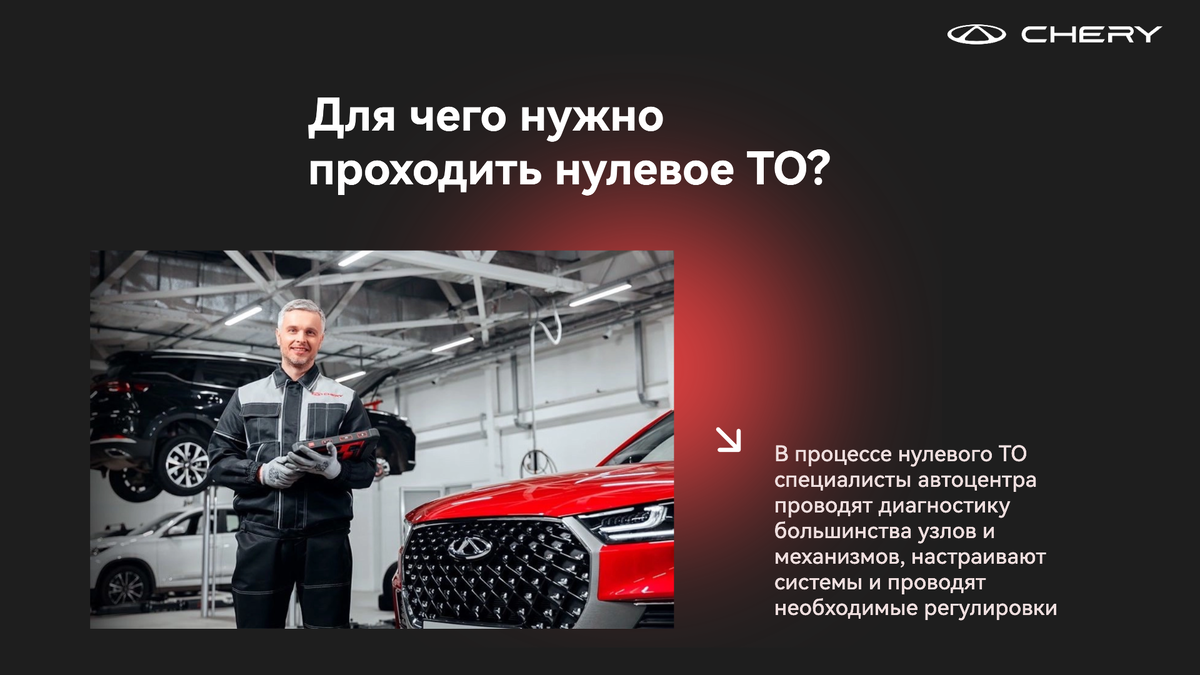 Нулевое техническое обслуживание — это не просто пункт в сервисной книжке, а ключевой этап, закладывающий основу долгой и надежной службы вашего автомобиля. В рамках этого обслуживания специалисты автоцентра «CHERY Центр на Маневровой» внимательно проверяют все основные узлы и агрегаты, проводят точную диагностику и выполняют необходимые настройки. Это позволяет не только адаптировать автомобиль к условиям эксплуатации, но и заранее выявить возможные скрытые дефекты, допущенные при сборке или доставке. Своевременное вмешательство исключает риск серьезных поломок в будущем и обеспечивает вашу безопасность на дороге. ❗️ Прохождение нулевого ТО у официального дилера — это уверенность в качестве: используются только оригинальные детали и строго соблюдаются регламенты CHERY. 😉 Заботьтесь о новом автомобиле с самого начала — он ответит вам надежностью на долгие годы. 📞 Наши контакты: г. Екатеринбург | ул. Маневровая, 40 | +7 922 187-77-18