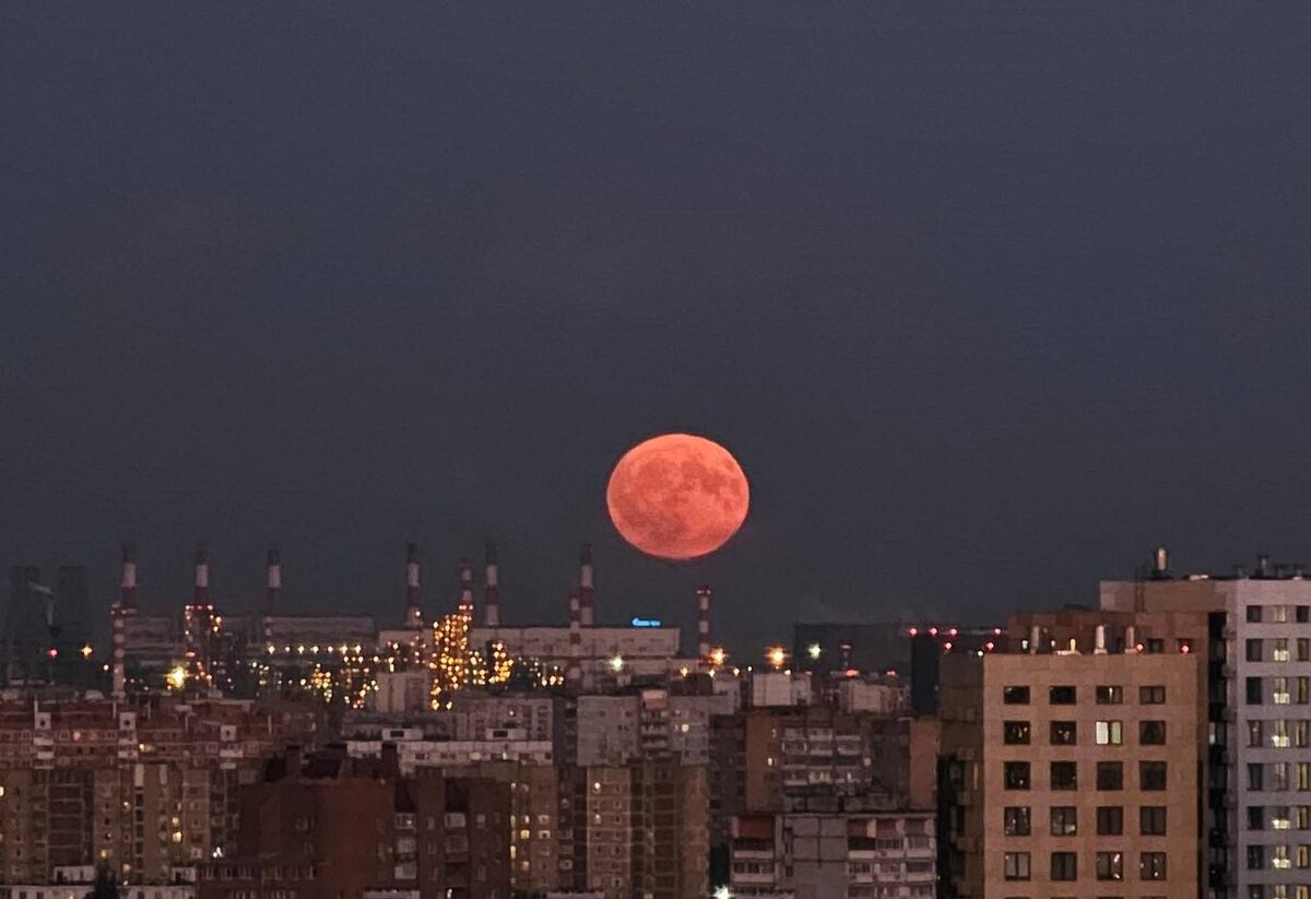 Клубничная луна - завораживающее космическое событие, когда Луна располагается низко над горизонтом, из-за чего приобретает красноватый