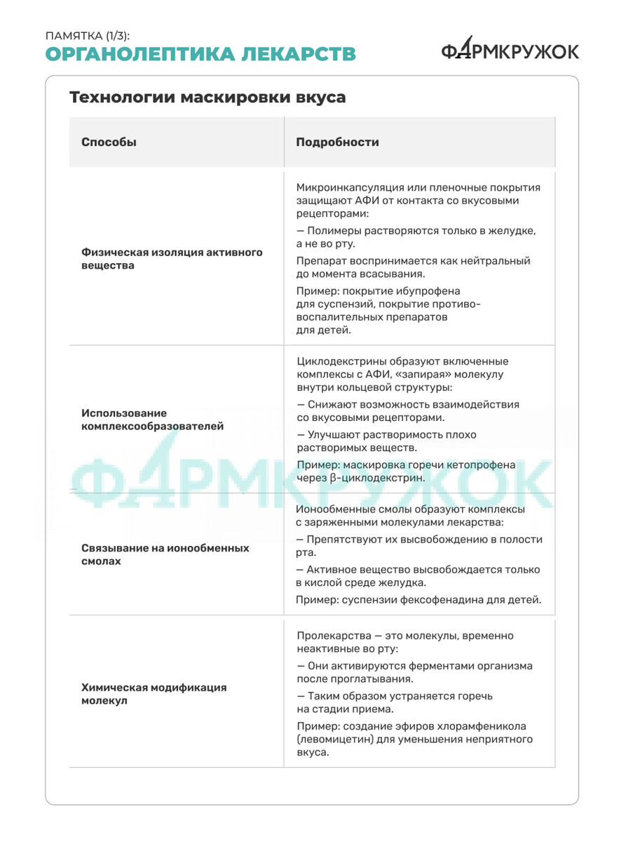 #фармгайд Вкус и запах лекарств — важный аспект, влияющий на отношение пациентов к терапии. Особенно это актуально для детей и пожилых людей, для которых неприятный вкус может стать препятствием к приему необходимых препаратов. Сегодня разработка лекарственных форм с приемлемым вкусом в приоритетах у производителей. 💊Коллеги, подготовили для вас фармгайд, в котором рассказали, как производители делают лекарства привлекательными с точки зрения органолептики.