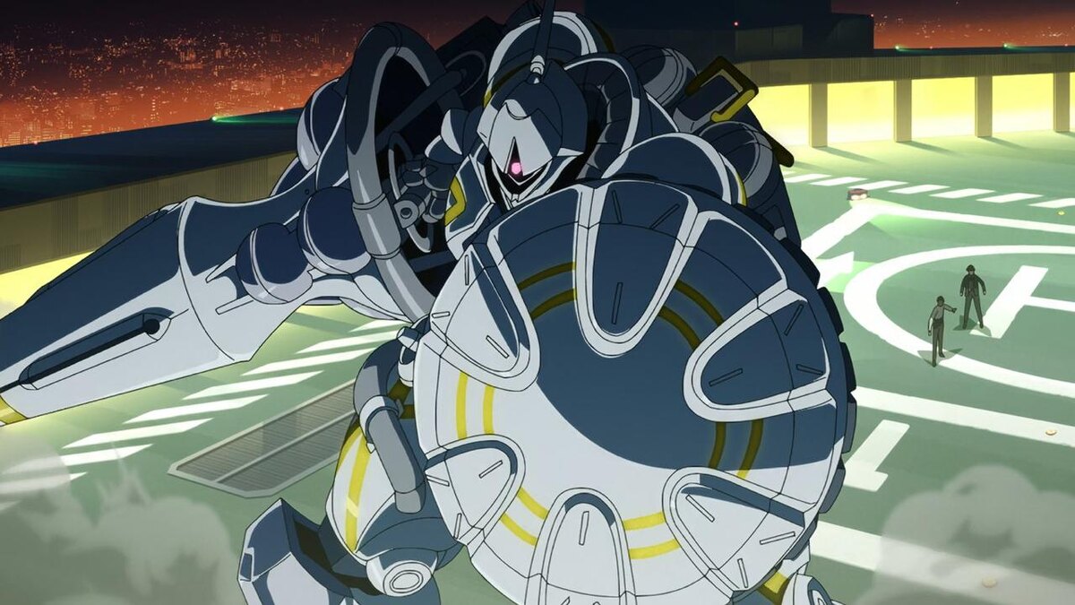 Но все равно не могу оторваться от сериала из-за великолепного арт-дирекшена. За него отвечает Хироси Като («Евангелион», «Призрак в доспехах», «Баракамон», «Ван Пис» и еще два десятка тайтлов). Аниме выглядит очень красиво: детализированные мехи, неоновые фоны, работа с цветом и формой.