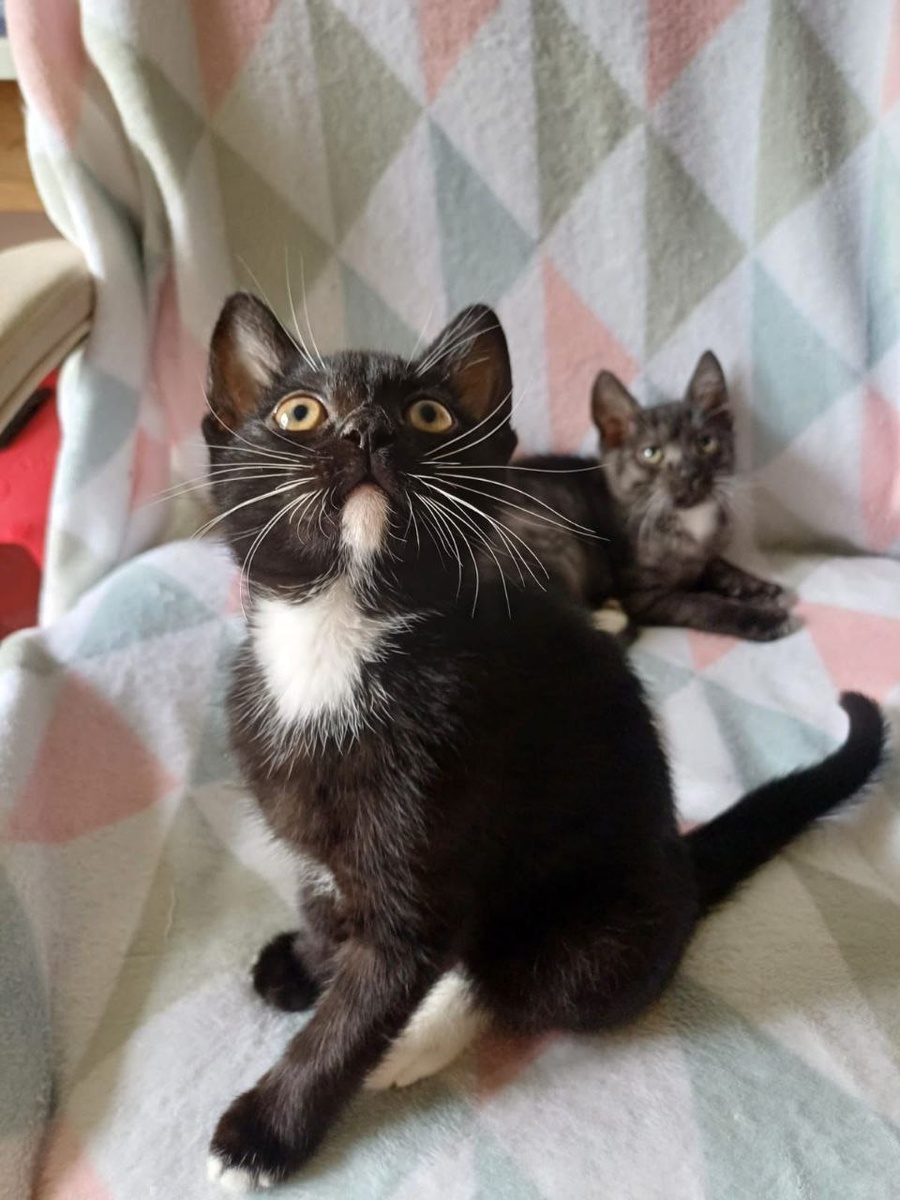 Котята по 2 месяца( черная девочка серо черный мальчик) проглистованы поставлена первая прививка ( есть вет паспорт) к горшку и когтеточке приучены, ласковые игривые))) едят сухой и влажный корм. Тел 8-902-924-64-73