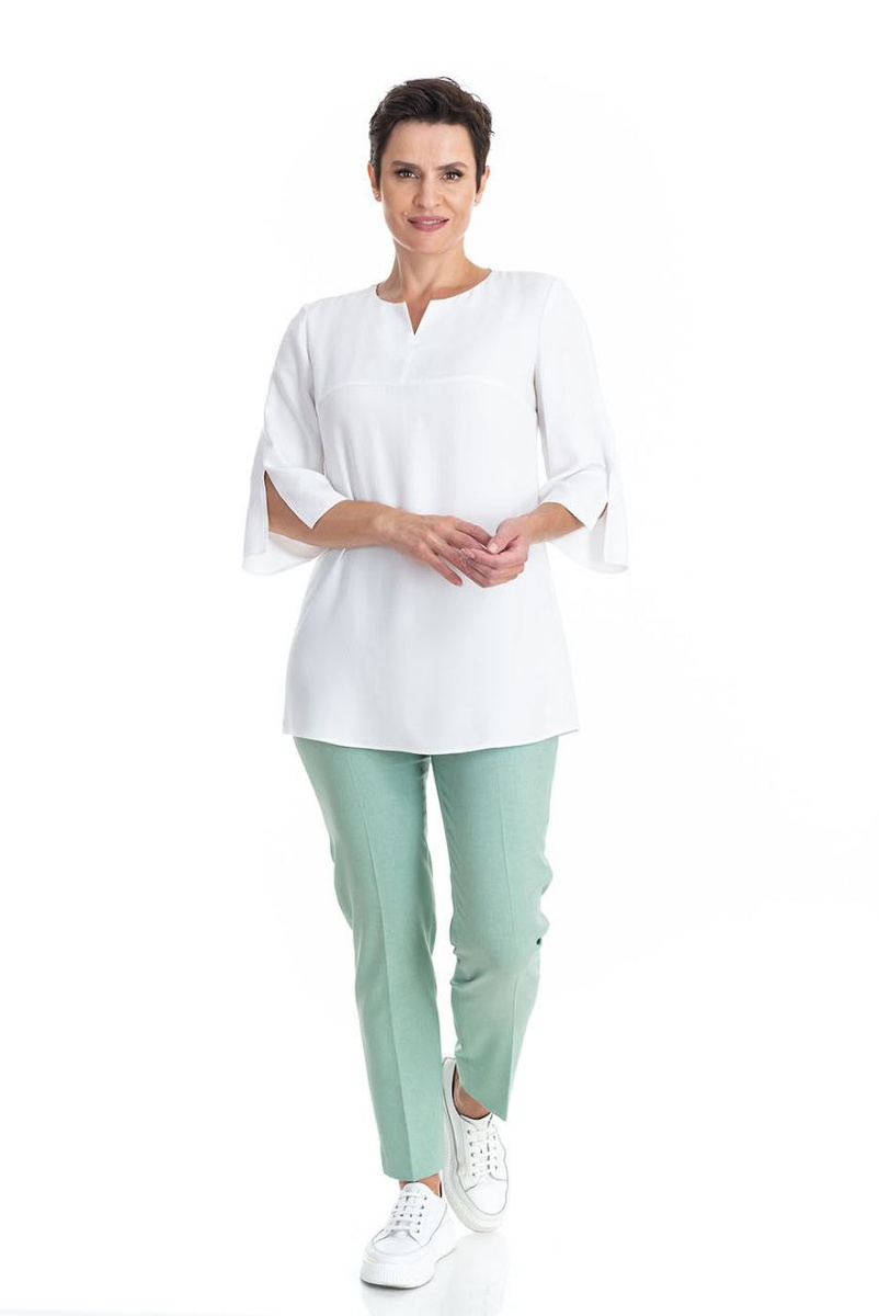 Белая туника хорошо комбинируется с любыми брюками. Прекрасно подходит для отдыха и свободного офиса.