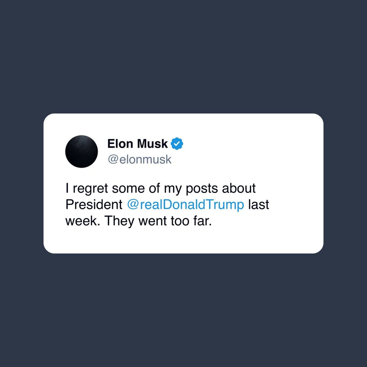 'I regret some of my posts about President Trump last week. They went too far'