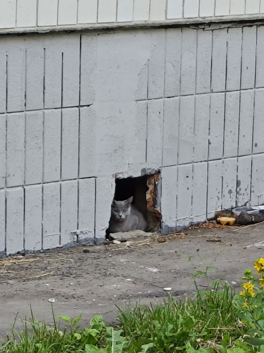 Замечены котята в подвале, двое точно есть. Одного удалось сфотографировать, второй убежал. В роду кто-то породистый ,на русскую голубую похож. Помогите им, пожалуйста!