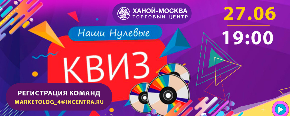 Традиционный ханойский пятничный КВИЗ ждет его поклонников и фанатов 27 июня! На этот раз тема будет бомбическая: наши нулевые! Как и прежде, игра бесплатно, НО количество команд и игроков СТРОГО ограничено! Регистрация уже идет полным ходом! Поэтому скорей пиши свои данные (название команды, количество участников и телефон для связи) на электронную почту: marketolog_4@incentra.ru. Приходите заранее, чтобы успеть заказать аутентичную еду на самом большом азиатском фудкорте Москвы и с комфортом разместиться перед игрой. ВАЖНО Сохраняйте чеки из кафе фудкорта «Ханой-Москва» за 27 июня. На обороте чека напишите номер своего телефона и опустите в лототрон на сцене. В конце игры состоится розыгрыш призов! Где: ТЦ «Ханой-Москва», 2-ой этаж возле сцены Когда: 27 июня в 19:00