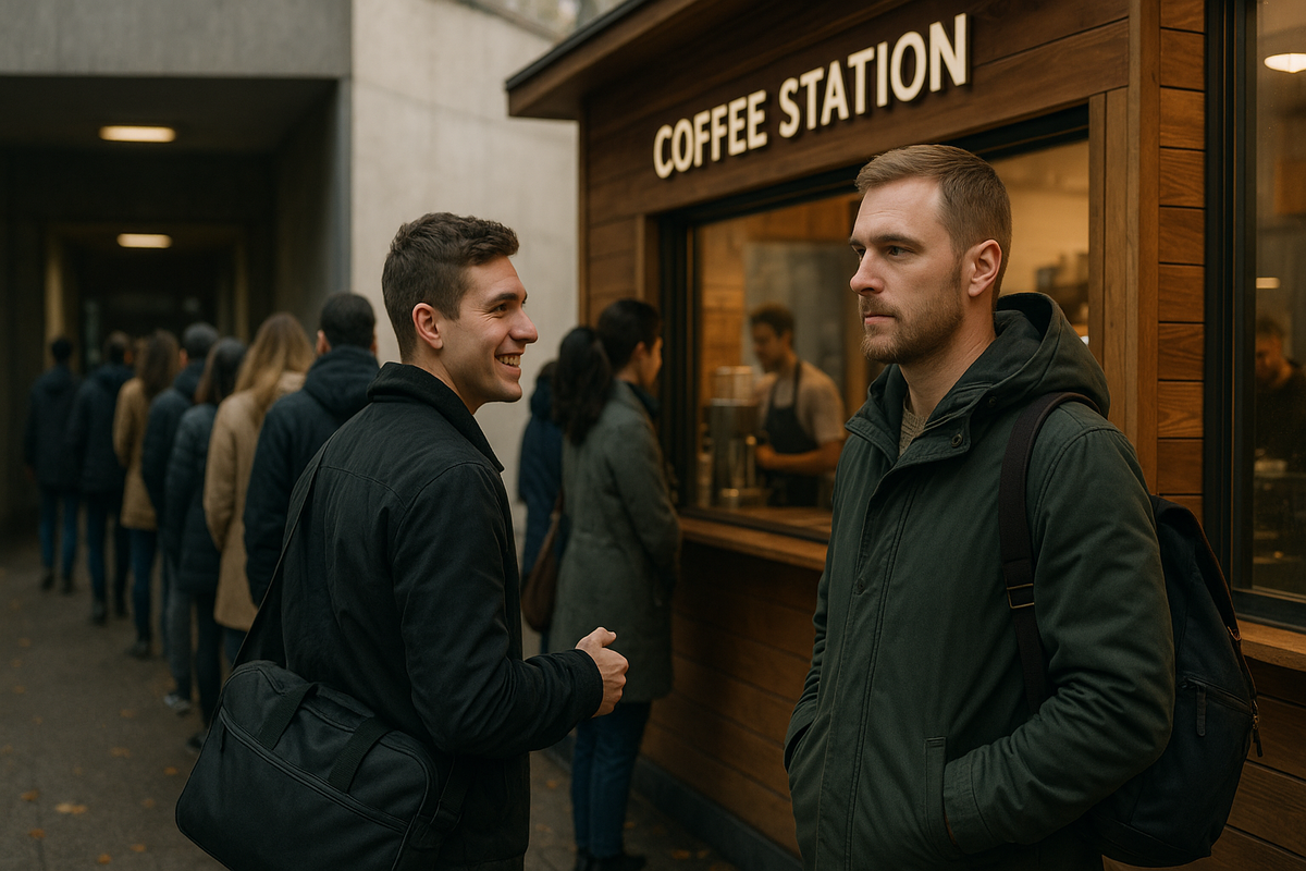 Мы стояли, разговаривали, и это было не похоже на обычную очередь. Это была почти маленькая встреча. Как будто у нас у всех было что-то общее. Не просто желание выпить кофе, а ощущение, что можно чуть-чуть притормозить в этом дне и вспомнить, что мы - люди.