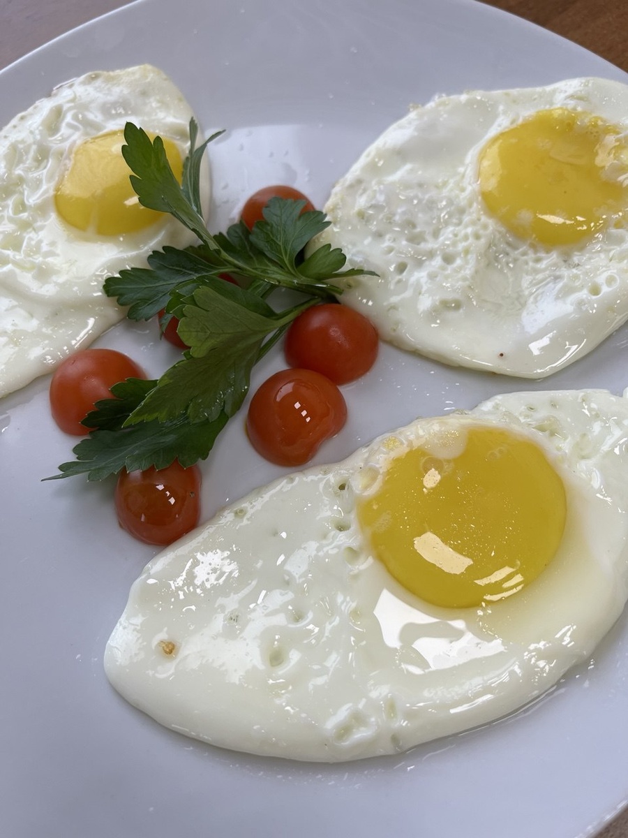 Белковый завтрак красиво быстро и полезно! Яичница — источник белка, витаминов и полезных жиров. Яйца, из которых готовят это блюдо, содержат незаменимые аминокислоты, витамины D, группы B и А, а также полезные жиры, включая омега-3! Кроме того, яичница надолго даёт чувство сытости, что помогает избежать перекусов до обеда. Чтобы сделать завтрак ещё более полезным, рекомендуется добавлять в блюдо овощи, зелень или цельнозерновой хлеб! Ингредиенты (на 1 порцию): Яйца — 3 шт.; Сливочное масло — 25 г; Соль — щепотка. Приготовление: