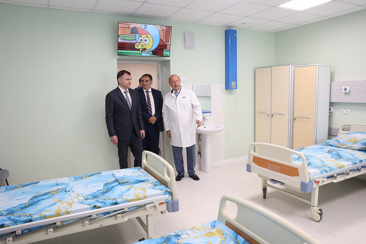 Глава региона Юрий Слюсарь побывал в ростовском детском комплексе клинико-диагностического центра «Здоровье». Это лечебное учреждение площадью 3500 кв. метров, расположенное в центре донской столицы, полностью обновлено и примет первых маленьких пациентов уже 16 июня. Здесь начнет работу поликлиническое отделение на 250 посещений в смену и стационар на 94 койки. «Объект важный и нужный, сдан на год раньше намеченного срока. За счет областных средств здесь проведена масштабная реконструкция: капитальный ремонт всех зданий, полная замена оборудования. На его закупку мы направили почти полмиллиарда рублей», - отметил Юрий Слюсарь. Уникальность практически заново созданного комплекса – в сочетании применения высокотехнологичного диагностического, лечебного, реабилитационного медицинского оборудования и современных методик лечения. Это позволяет в короткие сроки установить диагноз, провести терапию и реабилитацию. Эта больница единственная на юге России оснащена специализированной палатой