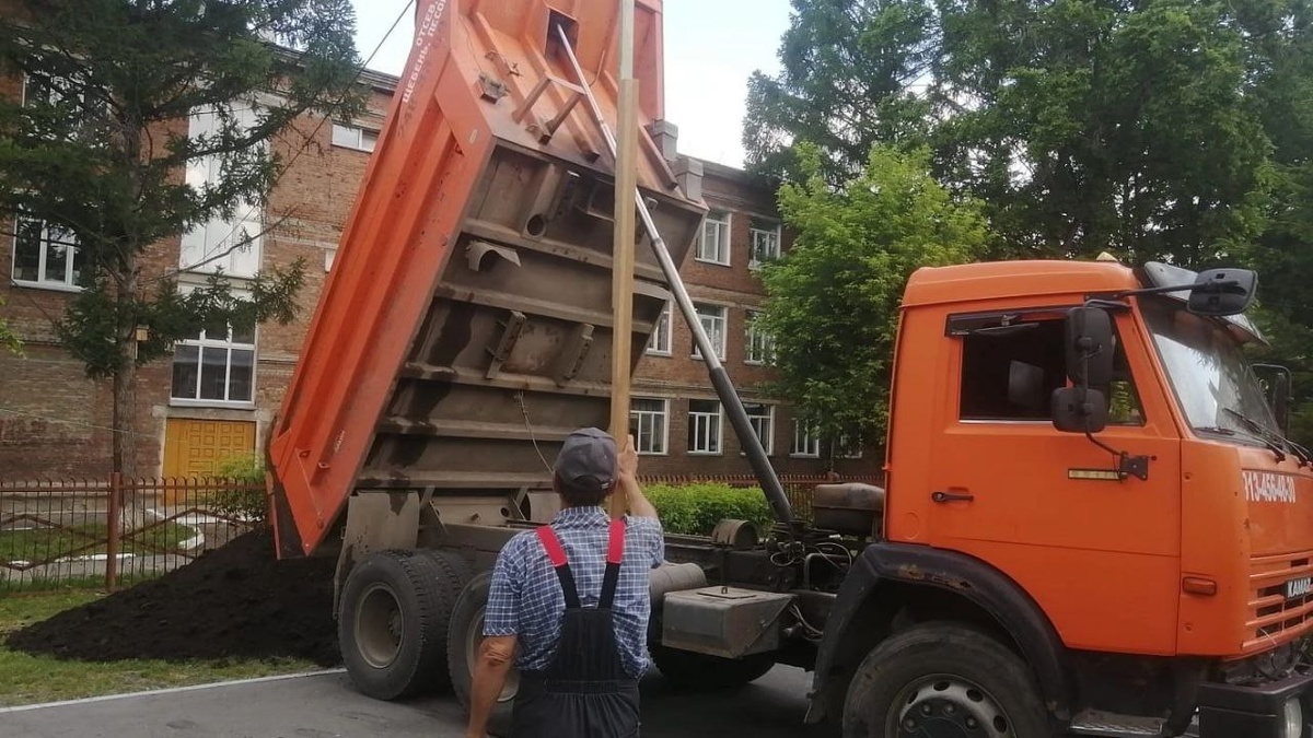 была завезена чёрная земля для благоустройства придомовых территорий и территории детского сада № 329.