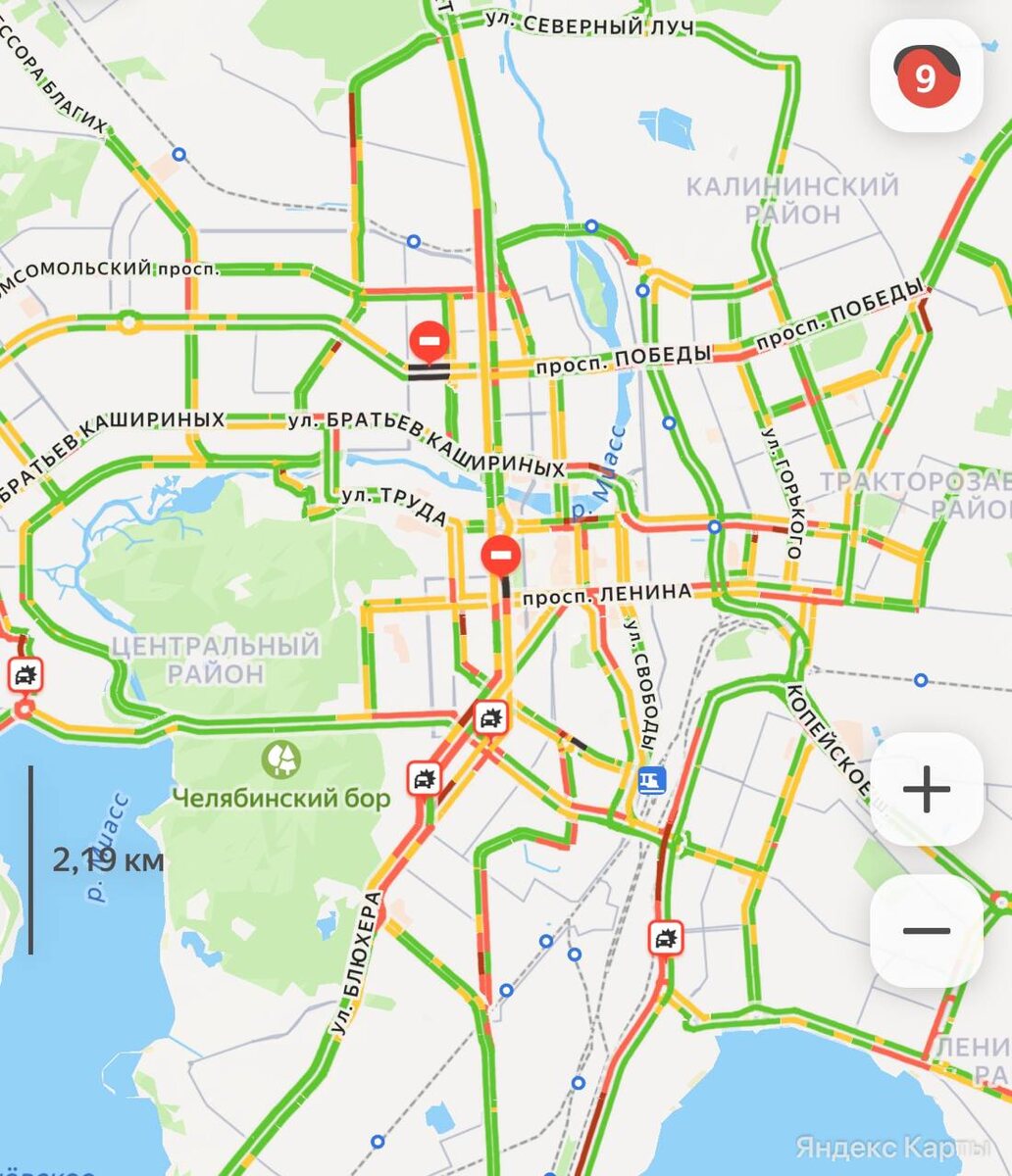⛔️ Пробки в 9 баллов сковали Челябинск в последний рабочий день этой недели