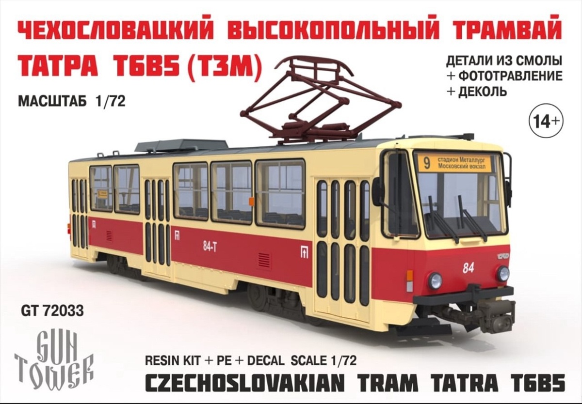 Тульская GunTower Models выпускает в середине июля модель трамвая Tatra-T6B5 (Т-3М) в масштабе 1/72 из полиуретановой смолы, выращенных на 3D-принтере и фототравленых деталей: Чехословацкий высокопольный трамвай Tatra-T6B5 (Т-3М) - каталожный номер GT72033