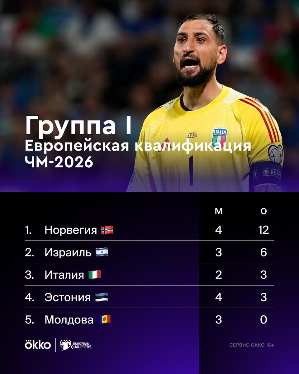 Италия рискует пропустить третий ЧМ подряд 😳 Чтобы выйти напрямую на мундиаль, итальянцам нужно будет выигрывать все оставшиеся матчи и ждать осечки от Норвегии. Ждем Италию на ЧМ-2026? ❤️ — да, выйдут с первого места или через стыки ⚡️ — нет, снова не попадут