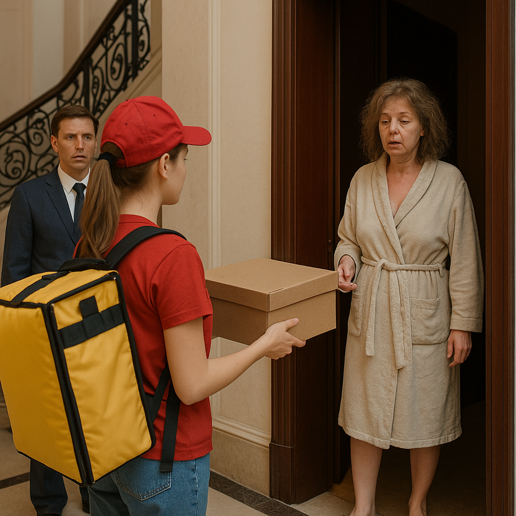 Приезжаю на адрес — район Патрики. Уже по геолокации понимаю: будет атмосферно. Улица оживлённая, на парковке — машины, каждая как бюджет на свадьбу. Повсюду бокалы с мятой, собаки в костюмах, девушки с идеально уложенными ресницами на веранде за 1500₽ в час. Захожу в подъезд, а там — консьерж, костюм, серьёзный взгляд. Вежливо интересуется, куда это я и к кому. В глазах читается подозрение: «Похоже, вы не из местных, слишком мало люкса». Я, конечно, про себя уже всё дорисовала: сейчас выйдет богиня в шёлочках и золоте, вытянет ручку с маникюром за заказом, скажет «поставьте сюда, пожалуйста, и без сдачи». Но! Лифт, этаж, звонок, скрип двери — и передо мной женщина. Настоящая. Сонная. Волосы — артхаус. Халат — пережил всё. Один тапок. Без гламура, без фильтров, без коктейля. Похожее я видела в Кузьминках, в Химках, и даже у бабушки в Саратове. Она спокойно передаёт заказ, благодарит, и дверь закрывается. А я стою и улыбаюсь. Потому что в такие моменты особенно чётко понимаешь — под все