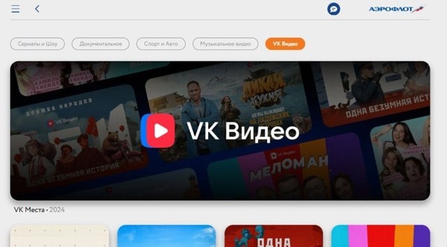 VK Видео и Аэрофлот запускают эксклюзивную развлекательную платформу на борту самолетов Видеосервис VK Видео стал доступен отдельной вкладкой в бортовых системах национального авиаперевозчика. Часть библиотеки оригинального контента VK Видео станет доступна пассажирам на борту самолетов Аэрофлота. Это первая в России интеграция отечественного видеосервиса в мультимедийную систему развлечений (IFE) авиаперевозчика. Пассажиры Аэрофлота смогут насладиться популярными развлекательными проектами прямо во время полета. Подробнее в релизе: vk.cc/cMKD4b