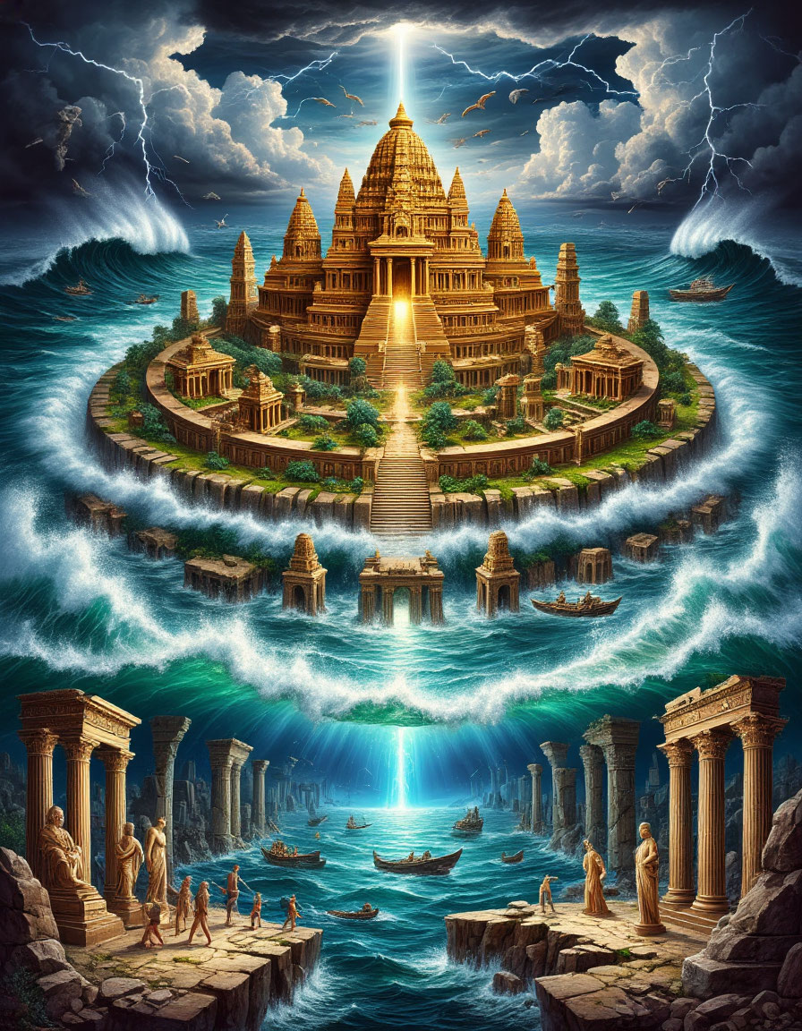 АТЛАНТИДА **ПЕСНЬ О ПОТЕРЯННОМ ОСТРОВЕ** В мире, где карты давно привыкли утыкаться в безбрежный океан, люди встречали закат, глядя в сторону мифов. Каждый ребёнок слышал о волшебной земле за водами — Атлантиде, острове, который исчез, когда надежда ещё была юной, а рассвет — розовым и упрямым. В маленькой приморской деревне жил мальчик Тимур. Его отец был рыбаком, а бабушка — самой настоящей рассказчицей на свете. По вечерам она плела сети и шептала сказки внуку под звон медных чайников. — Бабушка, а куда ушла Атлантида? — спрашивал мальчик, когда синий туман заглатывал солнце. — Вот слушай, — отвечала она, закидывая пряжу, — у каждого моря есть своё сердце. У Атлантики — особое. В нём хранится музыка городов, что были, но ушли. И самый главный из них — Атлантида, остров башен и зеркальных озёр. Бабушка рассказывала: выросла Атлантида у самого неба и была полна смеха и песен. На её улицах читали стихи дельфинам, а фонари зажигались от касания пальцев. Но однажды жители забыли, ради че