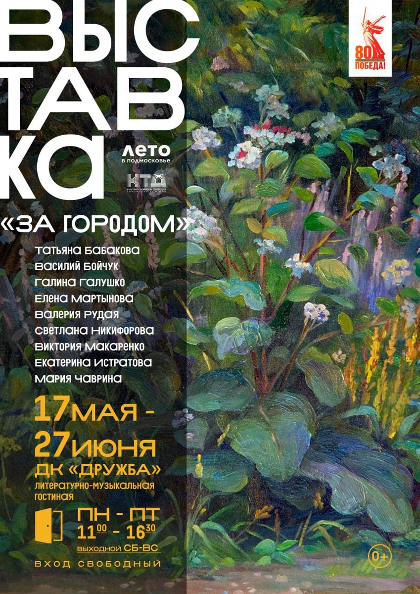 ✨ Бесплатная выставка "За городом" Приходите полюбоваться на милые дачные сюжеты🌞 и трогательные пейзажи 🎶 🖼️Выставка работает в будние дни по расписанию на афише. ✅Работает до 27 июня 📆 27.06.2025 🏢 ДК «Дружба» 📍 г. Чехов, ул. Чехова, д.45 🪙 Вход свободный❗️ #webЧехов ⭐Разместить публикацию ⭐Поддержать канал голосом ✅ Мероприятия Чехов https://dzen.ru/id/66cc4b48e9ef144699238a51 http://vk.com/chekhov_events http://dzen.ru/chekhov_events