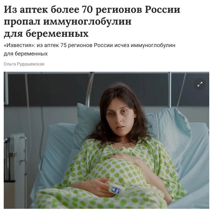 📉 Из российских аптек исчез важный препарат для беременных: что происходит? 🔴 Антирезусный иммуноглобулин — это препарат, сделанный из донорской крови. Он применяется для профилактики резус-конфликта между матерью и плодом, если у женщины отрицательный резус-фактор, а у будущего ребёнка — положительный. Без введения иммуноглобулина иммунная система матери может воспринять клетки плода как «врага» и выработать антитела, которые будут атаковать эритроциты малыша. Это грозит гемолитической болезнью новорождённого, анемией, поражением органов и даже гибелью плода. 📌 Препарат вводится: – в течение 72 часов после родов, аборта или выкидыша – на 28 неделе беременности для профилактики – при инвазивных вмешательствах, например, амниоцентезе 🛑 Сейчас в 75 регионах России, включая Москву и Петербург, этот препарат просто исчез. Причина — дефицит антирезусного иммуноглобулина как зарубежного, так и российского производства. Централизованные поставки не осуществляются, а медицинские учреж