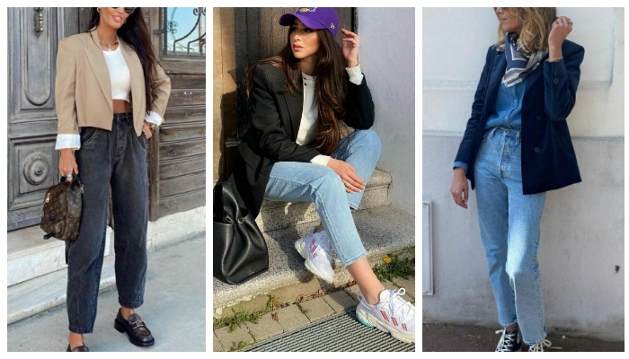 В арсенале каждой поклонницы моды непременно должны быть классические джинсы и изысканный пиджак. Если вы в раздумьях о том, как комбинировать эти базовые вещи, чтобы создавать актуальные и сбалансированные образы, оставайтесь с нами — далее вас ждёт масса ценных рекомендаций. Поразительное сочетание, которое заслуживает вашего внимания в этом сезоне, включает твидовый жакет зелёного оттенка, белую рубашку, светло-голубые джинсы, красные туфли с острым носом и минималистичный клатч неоновой расцветки. Сиреневый жакет удлиненного кроя + белый топ + светло-голубого цвета рваные джинсы + стеганый клатч голубого цвета + белые босоножки на высоком каблуке — интересный образ, который подойдет на каждый день и не только. Стильный кэжуал аутфит уже в этом сезоне можно составить с помощью черного жакета, белого лонгслива, укороченных светло-голубых джинсов, белых кроссовок, а также яркой бейсболки. Повседневной look с базовыми джинсами визуально преобразится, если его дополнить белоснежным жаке
