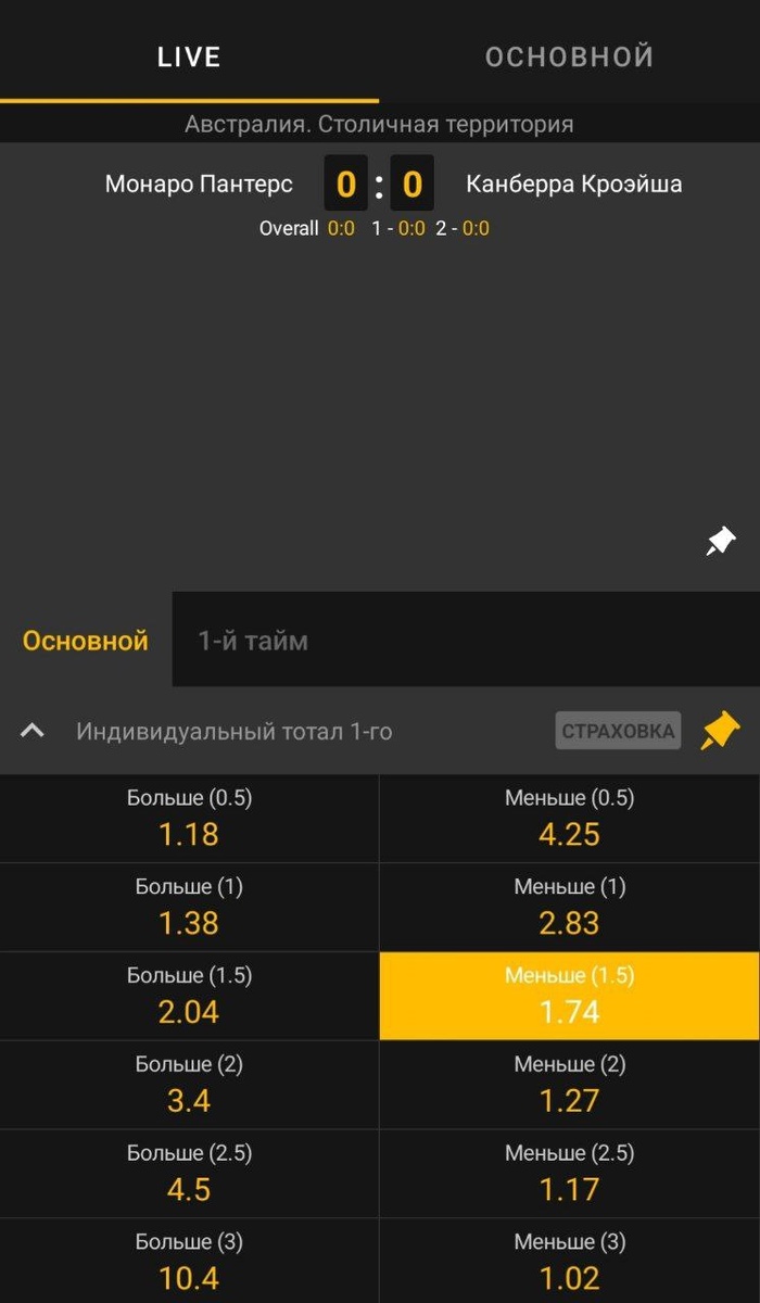🔴⏱⏱ Австралия 🇦🇺 Монаро Пантерс - Канберра Кроэйша Инд.тотал гостей 1.5 (М)