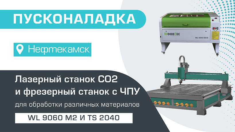 Пусконаладка лазерно-гравировального станка WoodTec WL 9060 M2 100W ECO и фрезерного станка с ЧПУ TS 2040 в Нефтекамске
