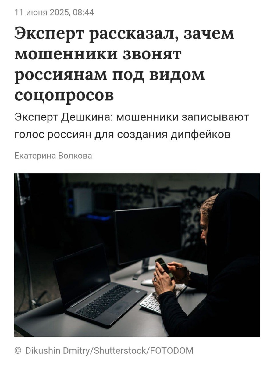 Мошенники используют социальные опросы для кражи голосов. С помощью всего нескольких фраз они могут создать точную копию вашего звучания. После этого начинают привычные схемы: звонки родственникам, с рассказами о несчастных случаях и просьбами о помощи с деньгами. Будьте осторожны. Наш уютный канальчик 🤖 Анимация | СhatGPT-4 | Помощь с резюме