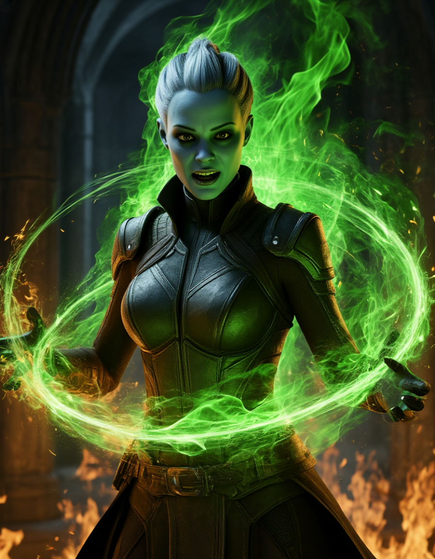 Скрежетнув зубами, Лиара создала вокруг себя огненный круг, вливая в него некромагию, которая в мгновение превратила его в зеленое пламя, поднимавшееся стеной, на какое-то время закрывая ее. Она погрузила в огонь лезвие меча, и из него потянулась черная струйка, добавляя к зеленым цветам черные. Зрелище было немного жутким. Пройти сквозь это пламя никто не рискнул бы, но расслабиться хоть на минуту ей не удалось, поскольку из языков огня вынырнула фигура Веларна.