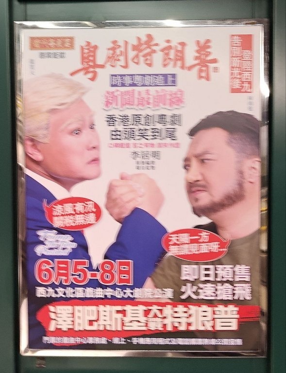 В Гонконге поставили целую кантонскую оперу с участием Трампа, и другого героя, внешне похожего на Зеленского. По сюжету – это комедия. Создатели, приглашая на спектакль говорили, что зрители «надорвут животы от смеха». По ощущениям сценарий писался «под веществами» (как комментировали участники русскоязычного сообщества Гонконга «для соответствия отдельным персонажам»). В сюжете фигурирует сам Трамп, его дочь Иванка, члены коммунистической партии Китая, Ким Чем Ын, персонаж с именем криптовалюты и призрак Аврамма Линкольна. В Материковом Китае поставить такое бы не дали, в Гонконге пока можно. Чтобы понять сюжет, нужно быть носителем кантонского языка или глубоко погруженным в среду человеком, который знает тонкости истории Китая, исторических персонажей и местный сленг. Спектакли идут с субтитрами, которые для понимания происходящего должны читать даже местные. Персонажи поют на старом языке, на котором больше не говорят. Представьте, как бы у нас пели на старославянском: частично по