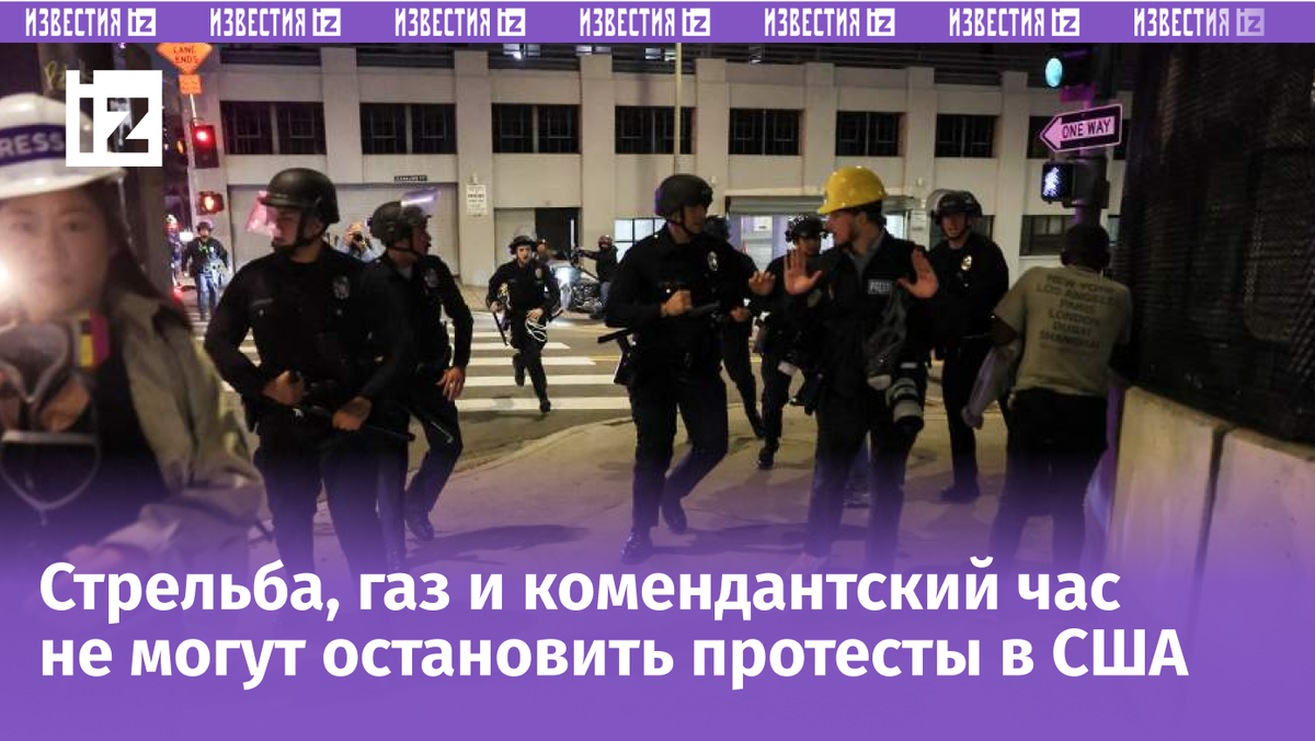 В центре Лос-Анджелеса введен комендантский час на фоне продолжающихся протестов против миграционной политики президента США Дональда Трампа. Мэр города Карен Басс сообщила о разграблении и вандализме на улицах. Что пишут СМИ о ситуации с беспорядками — в дайджесте «Известий».
