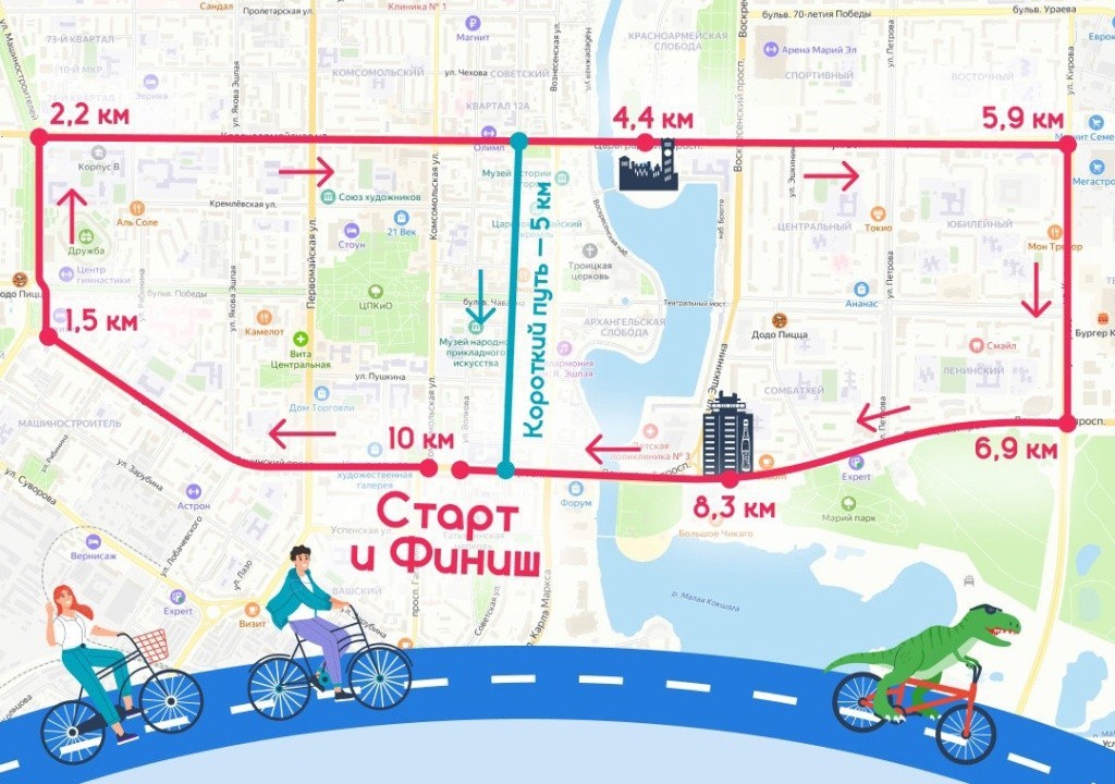 Программа десятого велопарада «Эвелин», который пройдет в Йошкар-Оле в это воскресенье, 15 июня