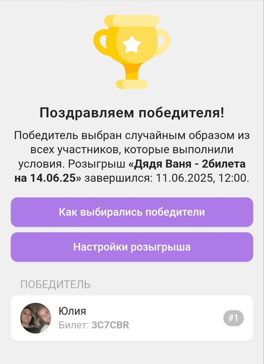 💓🧉🫖🫖Ура, ура У нас есть победитель розыгрыша 🫖🫖🫖 Ссылка на розыгрыш https://t.me/chekhov_events/14497 И Юлия получает 2 билета на спектакль Дядя Ваня в Мелихово Юлия, прошу, напишите нам🪩 или в личку или сюда в комментарии 🫖ПОЗДРАВЛЯЕМ 🫖