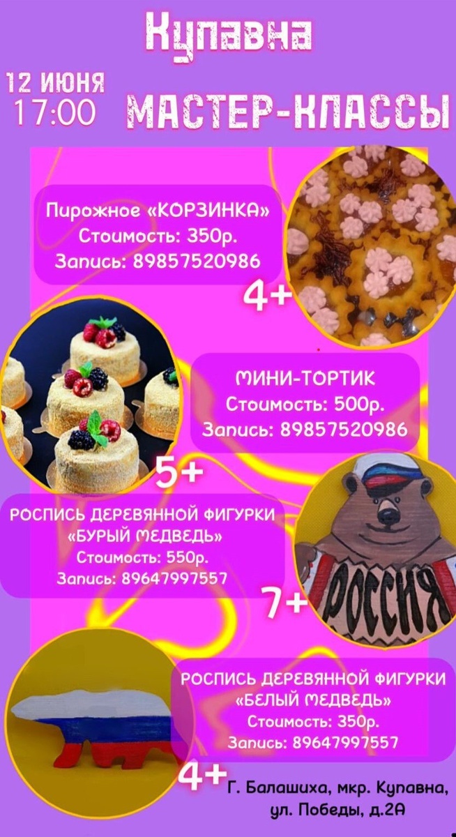 🌞Внимание, Купавна! 12 июня, в День России приглашаем всех желающих на творческие мастер-классы. 🧸С 17:00 у вас есть возможность попробовать себя в различных видах рукоделия, создать уникальные вещи своими руками и открыть в себе новые таланты, в том числе кулинарные! 🎞 А в 18:00 распахнет свои двери мир кино! Приглашаем вас на показ, где вас ждет очередная захватыващзая киноистория! Вход свободный. ❗На мастер-классы необходимо предварительно записаться! #творчествобалашиха, #Купавна #Подмосковье, #культураподмосковья, #культурабалашихи, #ЛЕТОВПОДМОСКОВЬЕ, #железнодорожный, #дксаввино, #вПодмосковье,#НашеПодмосковье #вБалашихе, #Балашиха,
