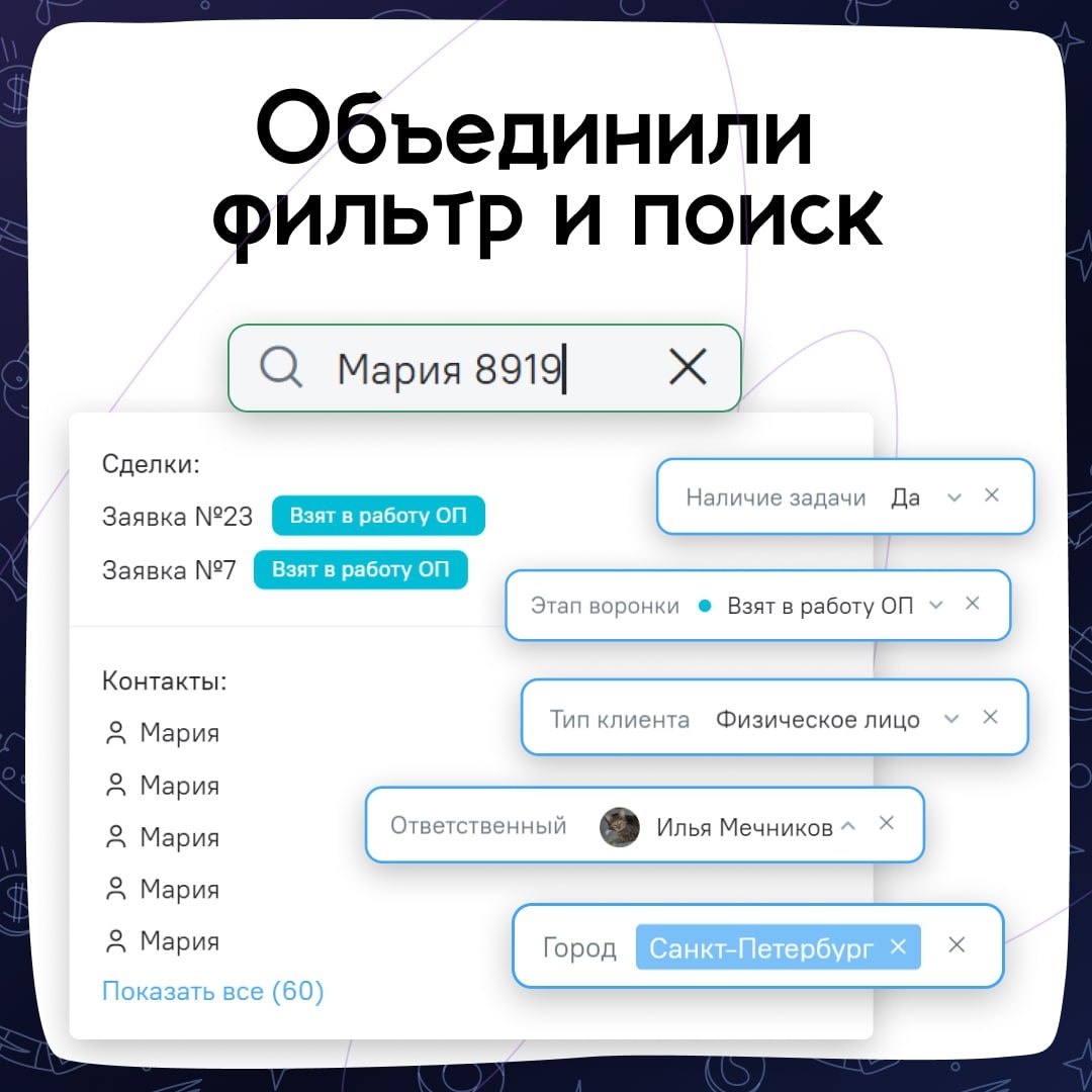 πͺΠΠΈΡΡΠΈΠΊΠ° Π² OkoCRM: ΠΏΠΎΠΈΡΠΊ ΡΡΠ°Π» ΠΈΡΠΊΠ°ΡΡ ΠΊΠ°ΠΊ ΡΠ΅Π»ΠΎΠ²Π΅ΠΊ 1β£ Π€ΠΈΠ»ΡΡΡΡ ΠΈ ΠΏΠΎΠΈΡΠΊ ΡΠ΅ΠΏΠ΅ΡΡ ΡΠ°Π±ΠΎΡΠ°ΡΡ Π²ΠΌΠ΅ΡΡΠ΅ β ΠΊΠ°ΠΊ ΠΎΠ΄Π½ΠΎ ΡΠ΅Π»ΠΎΠ΅ Π Π°Π½ΡΡΠ΅ Π½Π°Π΄ΠΎ Π±ΡΠ»ΠΎ Π²ΡΠ±ΠΈΡΠ°ΡΡ: ΠΈΠ»ΠΈ ΡΠΈΠ»ΡΡΡΡΠ΅ΡΡ ΡΠ΄Π΅Π»ΠΊΠΈ, ΠΈΠ»ΠΈ ΠΈΡΠ΅ΡΡ ΠΏΠΎ ΡΠ΅ΠΊΡΡΡ. Π₯ΠΎΡΠ΅Π» Π½Π°ΠΉΡΠΈ Π²ΡΠ΅Ρ