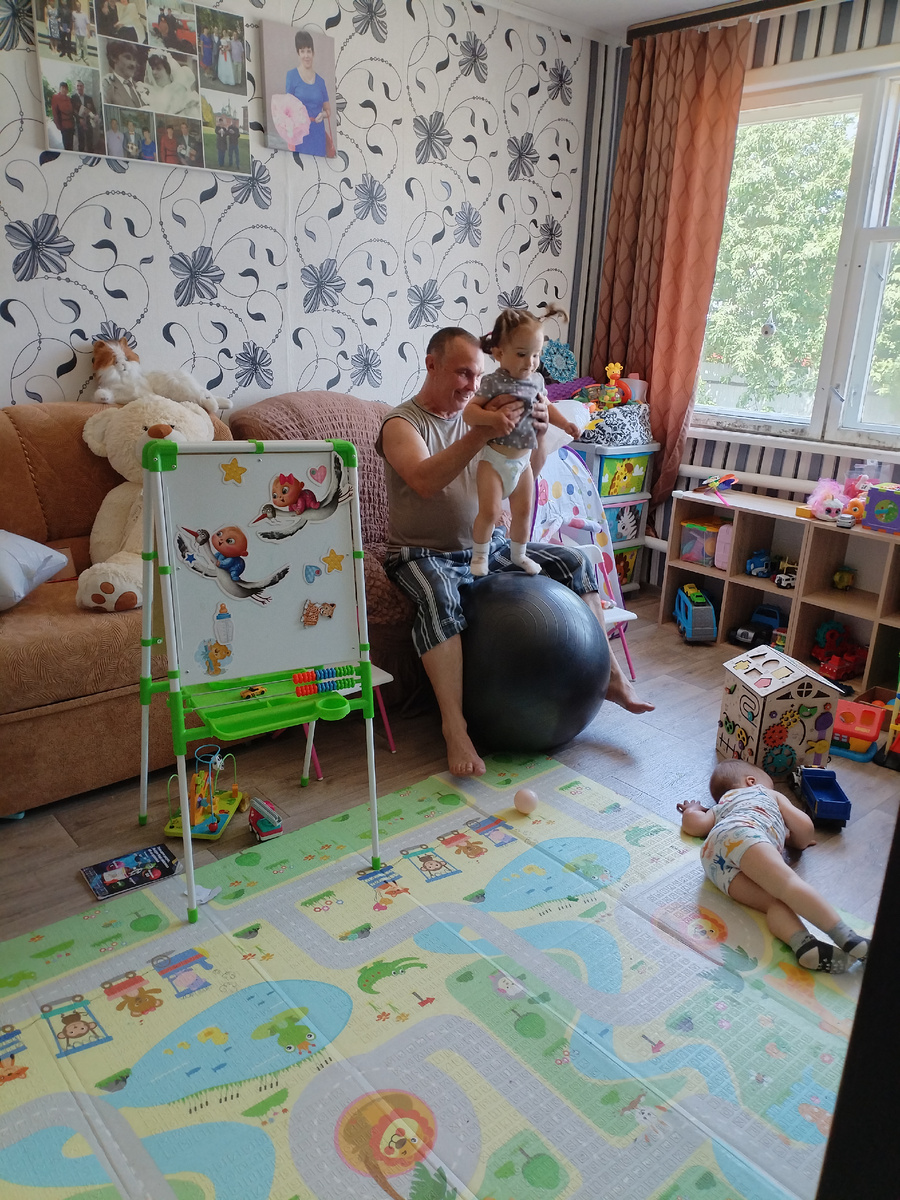 Амелия стала коммуникабельна. Со всеми общается, играет, всем улыбается. Сева с серьезным видом всех рассматривает, на контакт не идет. Только с одной из них играл, показывал ей шишки, включал музыку на коляске. Подружились. Вот как, выборочно.