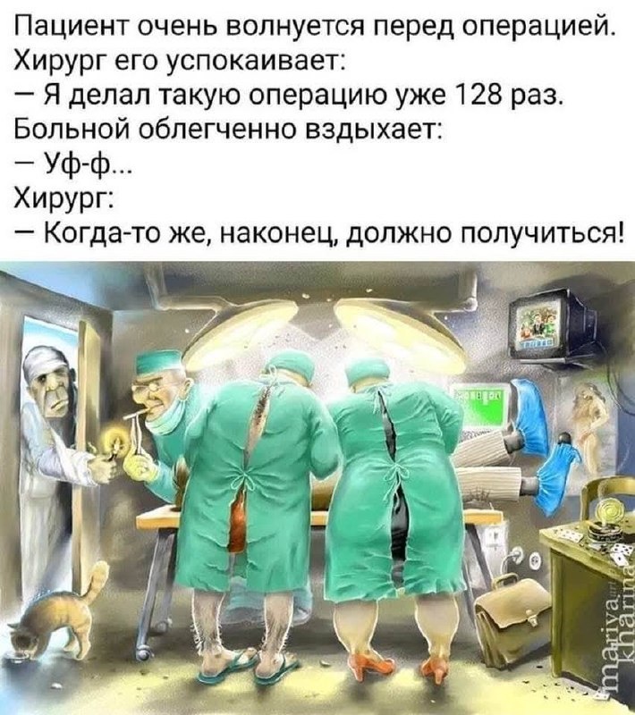 Тоже люблю пошутить подобным образом. В нашем уютном бложике много девочек, которых я лично оперировал. А я тот еще шутник😁 Плюс ко всему, никогда не бывает лишним разрядить обстановку в операционной. Все таки процесс для многих волнительный. Так вот. Захожу я значит намытый в операционную и сильно-волнующейся пациентке говорю: - Ты, милочка, так сильно не бойся. Потому что мне самому очень страшно. Ведь это моя первая операция😂 Те, кто меня знают, не верят, но вежливо улыбаются. Кто меня не знает, тоже не верят. Видимо на студентика я не очень похож❤️ #докториваха