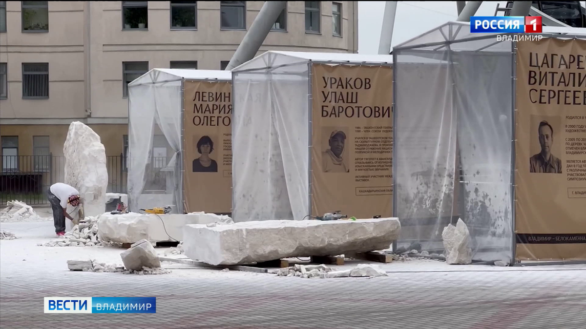 Собственно, одна из тем у мастеров, участвующих в международном фестивале - "Многодетная семья". Вторая - "Защитники Отечества". Десять зодчих России и из зарубежья создают из белого камня скульптуры, которые потом украсят общественные пространства областной столицы. Работа с камнем - дело пыльное, зодчие стараются работать в сетчатых шатрах.