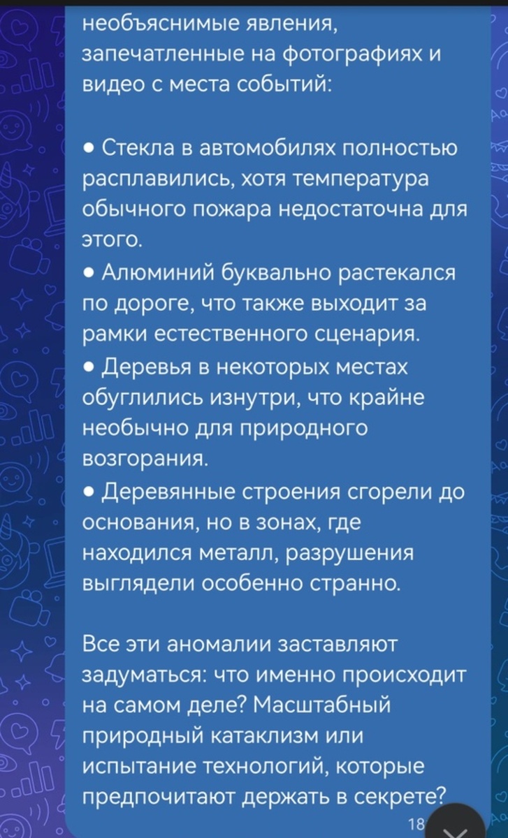 Введение Каждый год Калифорния становится ареной масштабных природных катастроф, и лесные пожары не исключение. Однако, что если за этими разрушительными явлениями стоит нечто большее, чем просто природные катаклизмы? В этой статье мы рассмотрим несколько теорий заговора, которые могут объяснить, почему пожары в Калифорнии стали настолько частыми и разрушительными. Теория №1: Эксперименты с погодой Некоторые конспирологи утверждают, что участившиеся пожары — это результат секретных экспериментов по изменению климата. Якобы правительственные ученые намеренно создают условия для возникновения пожаров, чтобы тестировать новые технологии управления погодой. Странные погодные аномалии и необычные погодные явления в регионе только подкрепляют эти теории. Теория №2: Уничтожение лесов ради новых территорий Существует предположение, что пожары — это часть масштабного плана по расчистке лесных территорий для строительства новых жилых комплексов и коммерческих зон. Якобы крупные корпорации и пр