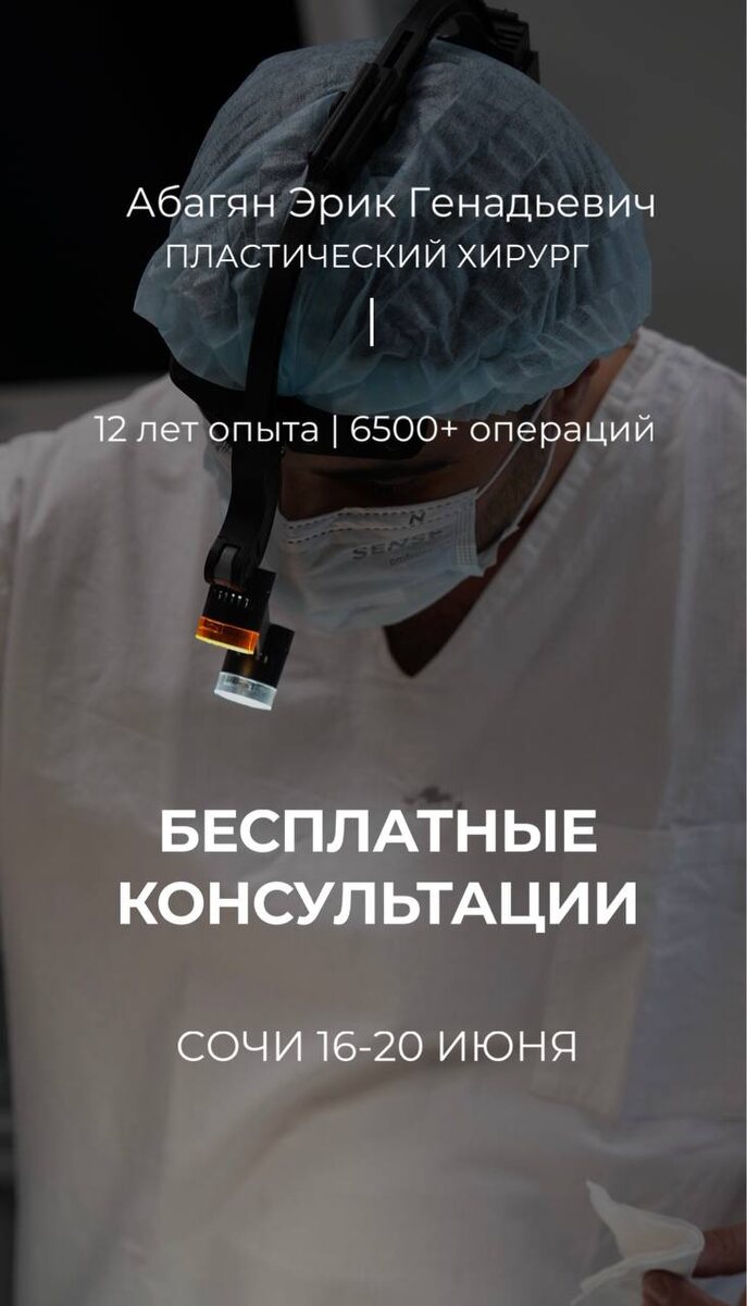 💬Ты не обязана решаться. Но ты имеешь право узнать. «Я просто спрошу…» — и всё равно откладываешь месяцами? Так думает каждая третья девушка, которая приходит на консультацию. А потом выходит с ощущением: «Почему я боялась? Здесь не уговаривают. Здесь честно говорят: нужна операция тебе или нет». 🧑🏻⚕️Доктор Эрик Абагян — пластический хирург, известный своим эстетическим вкусом и внимательным отношением к деталям. 16-20 июня в Сочи — доктор Абагян проводит бесплатные очные консультации. Просто прийти. Спросить. Убедиться 👇🏻 📞+7 900 000-32-93 💌Записаться на бесплатную консультацию 📸Инста: abagyan_plastic