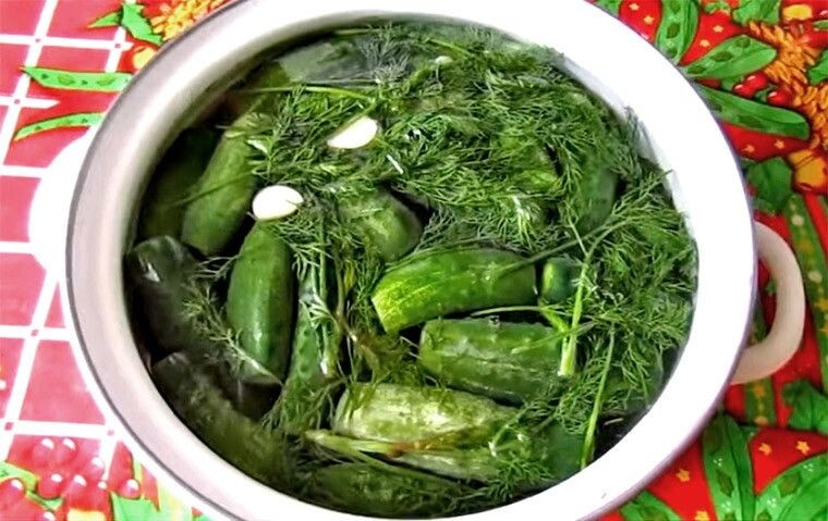 Ингредиенты: ▪️Огурцы – 2 кг ▪️Вода минеральная (газированная) – 2 л ▪️Укроп – 1 пучок ▪️Чеснок – 6 зубчиков ▪️Соль – 4 ст. л. Приготовление пошагово: 1️⃣Огурцы берем маленькие или средние, отрезаем кончики, так огурцы быстрее насытятся рассолом и быстрее просолятся. 2️⃣Чистим чеснок и режем его на пластины. По желанию можно пластины чеснока потолочь до появления сока, так огурцы будут более ароматными. 3️⃣На дно эмалированной кастрюли укладываем половину большого пучка укропа, немного пластин чеснока и огурцы. 4️⃣Так чередуем слои до конца кастрюли, пока не кончатся огурцы. 5️⃣Сверху накрываем укропом и готовим рассол. 6️⃣В отдельную кастрюлю высыпаем соль и заливаем ее минеральной газированной водой, мешаем ложкой до растворения соли. 7️⃣Полученным рассолом заливаем огурцы, накрываем сверху тарелкой, чтобы огурцы не всплывали, и отправляем в холодильник. #огурцы #огурцымаринованные